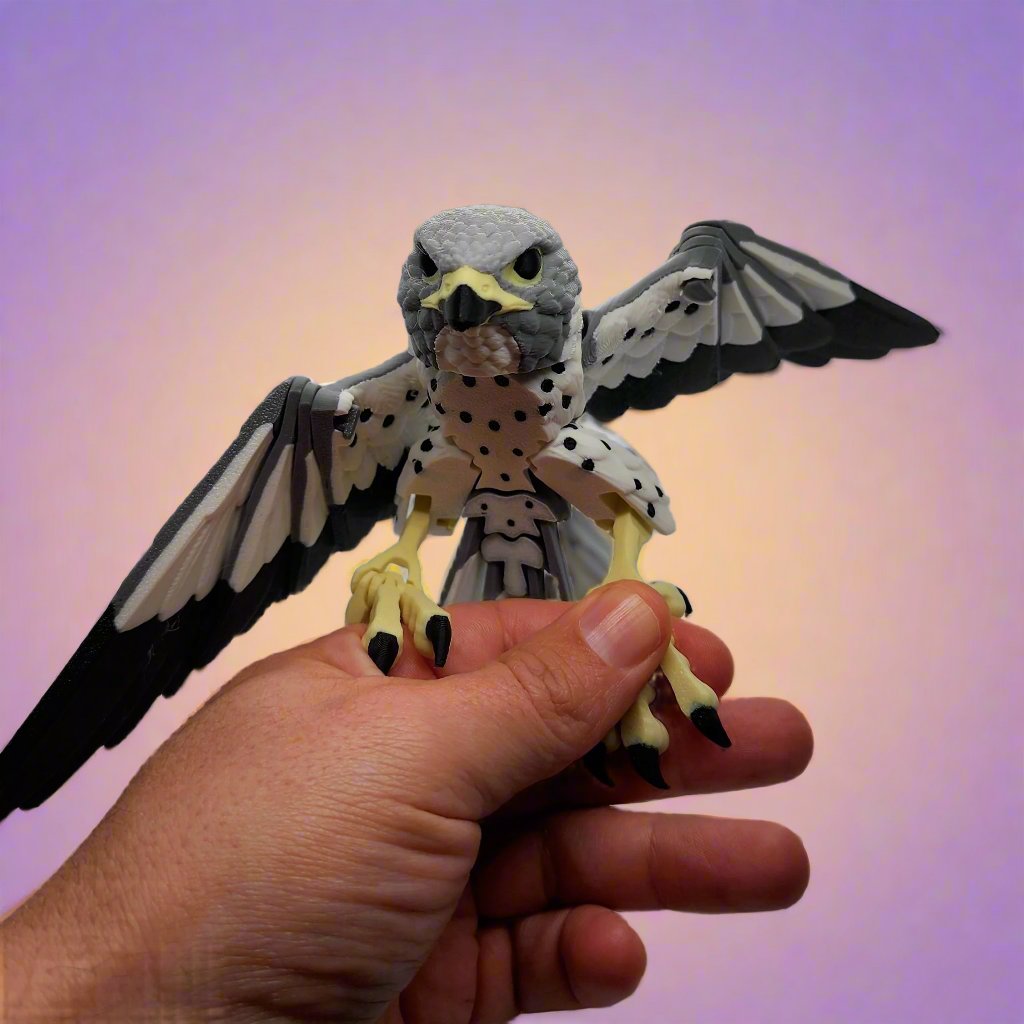 Soar to new heights with this articulated Peregrine Falcon fidget! This bird of prey features realistic, movable wings and joints, offering a satisfying fidget experience. Perfect for bird lovers and fidget fans alike, it combines intricate design with fun, tactile play. Take flight with this unique, stress-relieving companion!